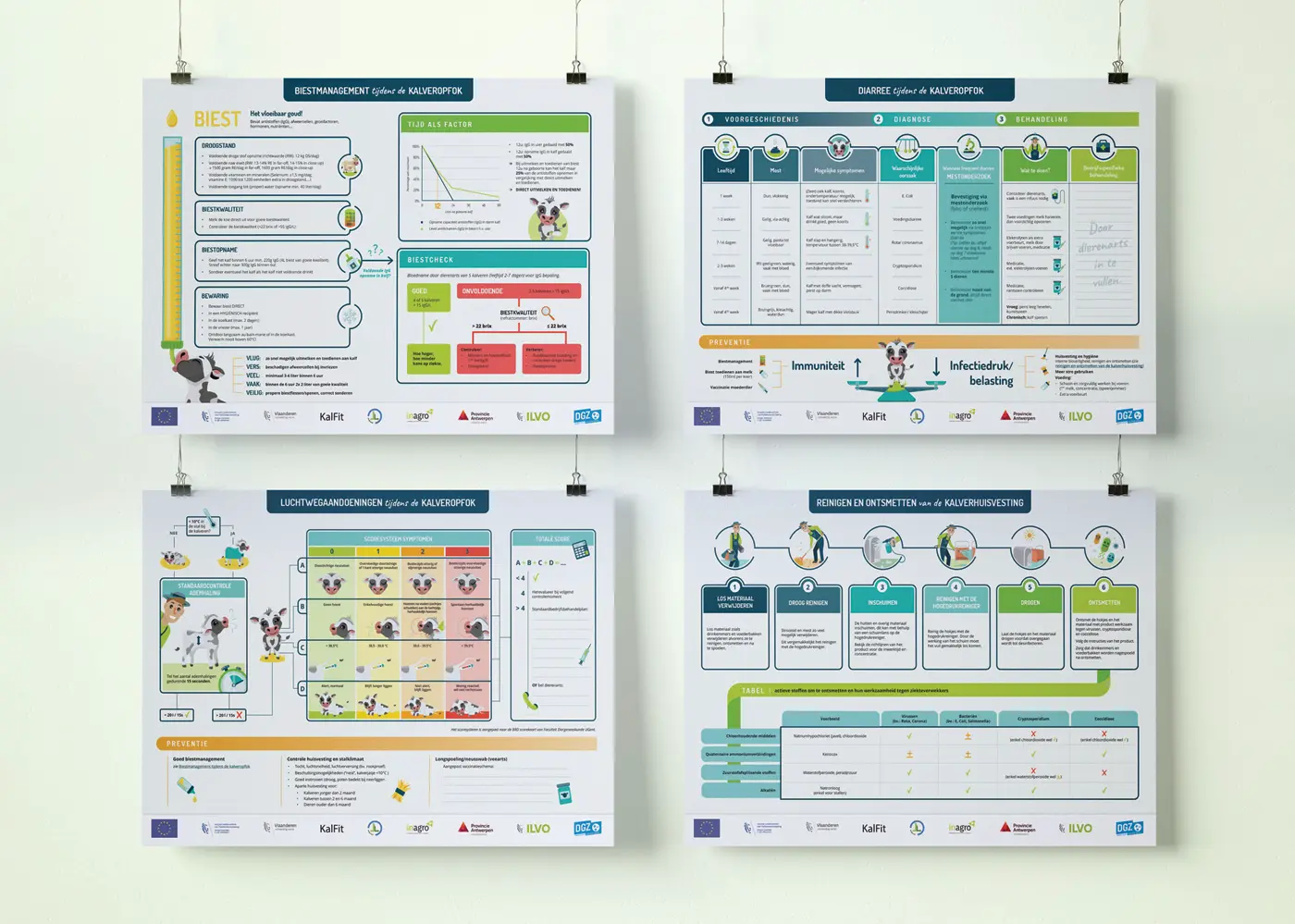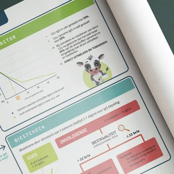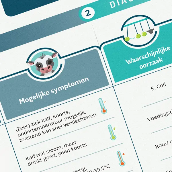 Voor Kalfit / Inagro ontwierp ik deze infographics om in een oogopslag alle belangrijke informatie te weergeven om kalveren gezond te houden