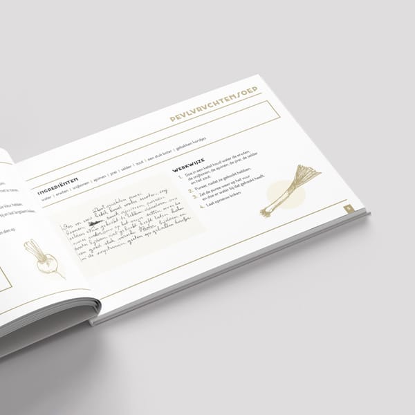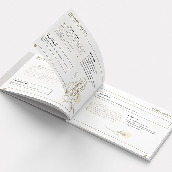 Het schriftje was er nogal slecht aan toe maar ik wou het toch eren door het in te scannen en als ondergrond te gebruiken voor de cover van het boek. Ook staat bij elk recept de originele tekst in Eliza’s handschrift. En bij gebrek aan receptfoto’s uit 1917 heb ik elke pagina voorzien van een illustratie.