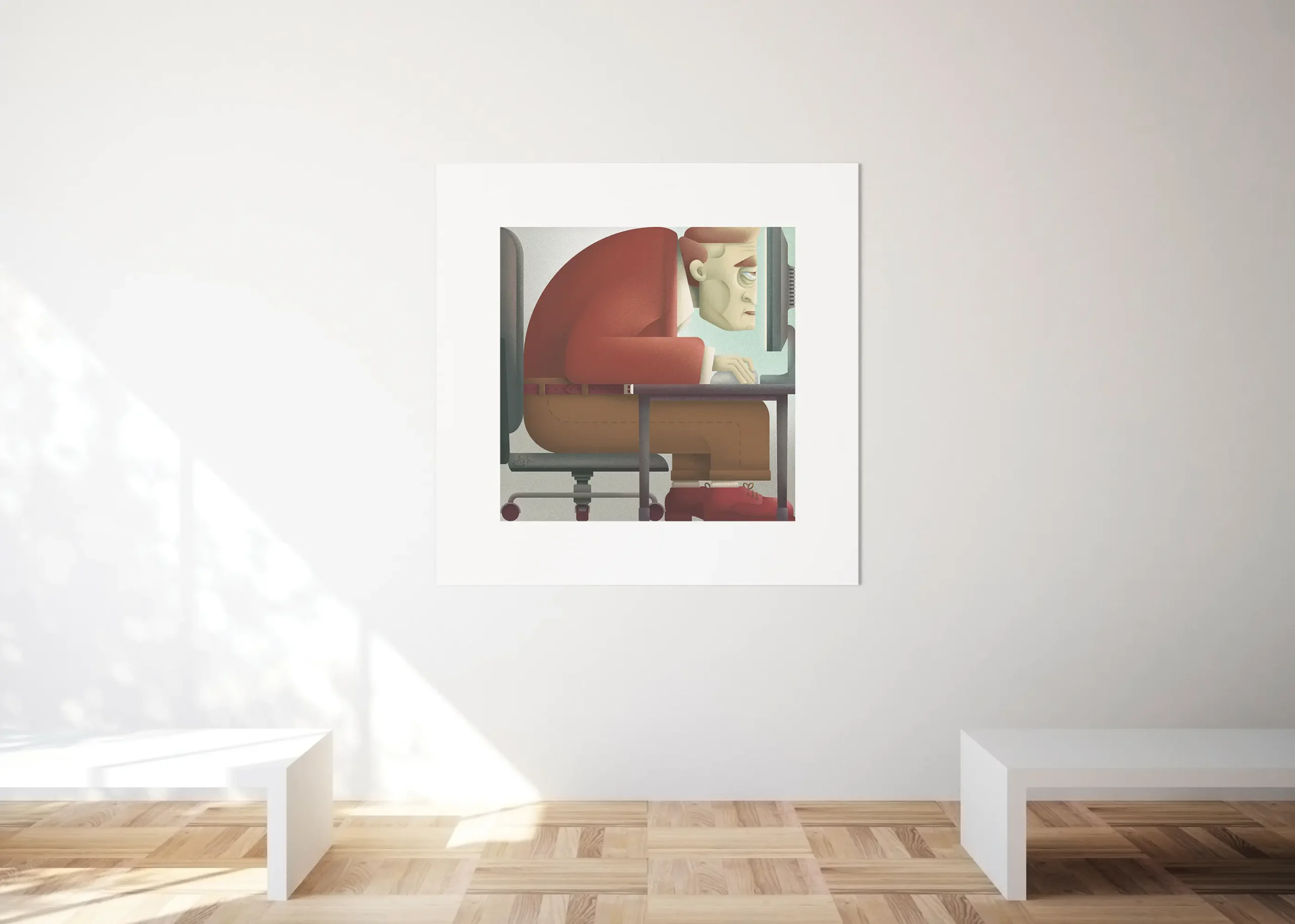 Een persoonlijk project over werkcultuur en productiviteit in een claustrofobische illustratie.